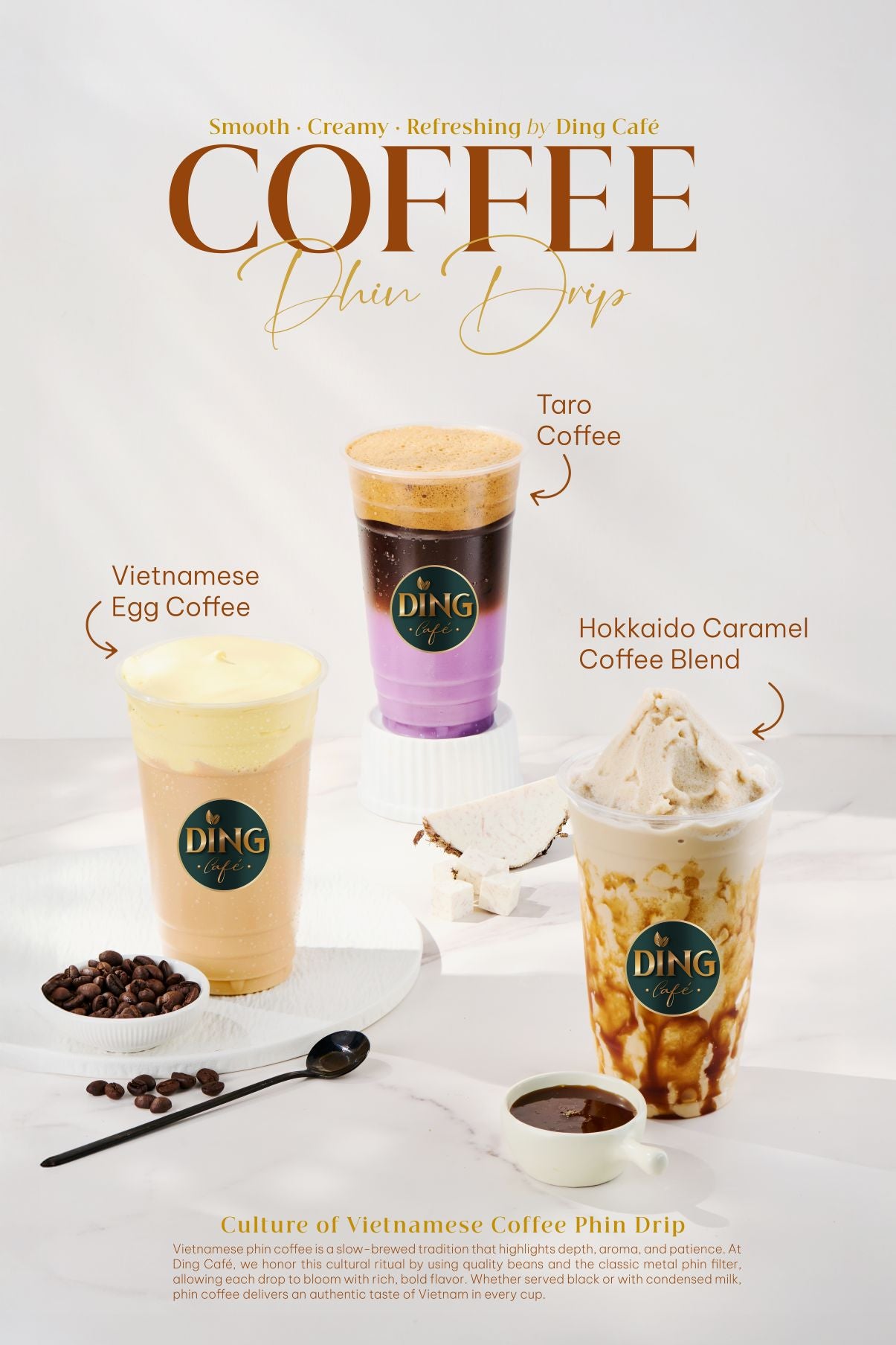 “Small-batch "phin" coffee, ceremonial-grade matcha, and thoughtfully crafted drinks. Made fresh daily for those who love quality without the fuss. Made by Ding Cafe - for your flavorful taste.”